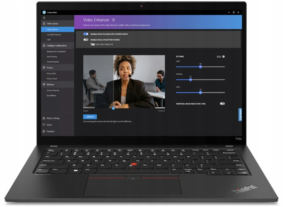 Zintegrowana karta graficzna AMD Radeon™ 780M to prawdziwy przełom w świecie laptopów biznesowych, oferujący wydajność porównywalną z dedykowanymi układami dzięki nowoczesnej architekturze RDNA™ 3. Zapewnia ona płynną obsługę zaawansowanych zadań multimedialnych, lekką edycję wideo oraz bezproblemową pracę na wielu monitorach jednocześnie, co znacząco podnosi Twój komfort i produktywność. Dzięki wsparciu dla najnowszych kodeków, możesz cieszyć się krystalicznie czystym obrazem podczas wideokonferencji oraz relaksować przy ulubionych filmach po godzinach. Co najważniejsze, łączy ona tę imponującą moc z wysoką energooszczędnością, pozwalając na jeszcze dłuższą pracę ThinkPada T14s na jednym ładowaniu baterii.