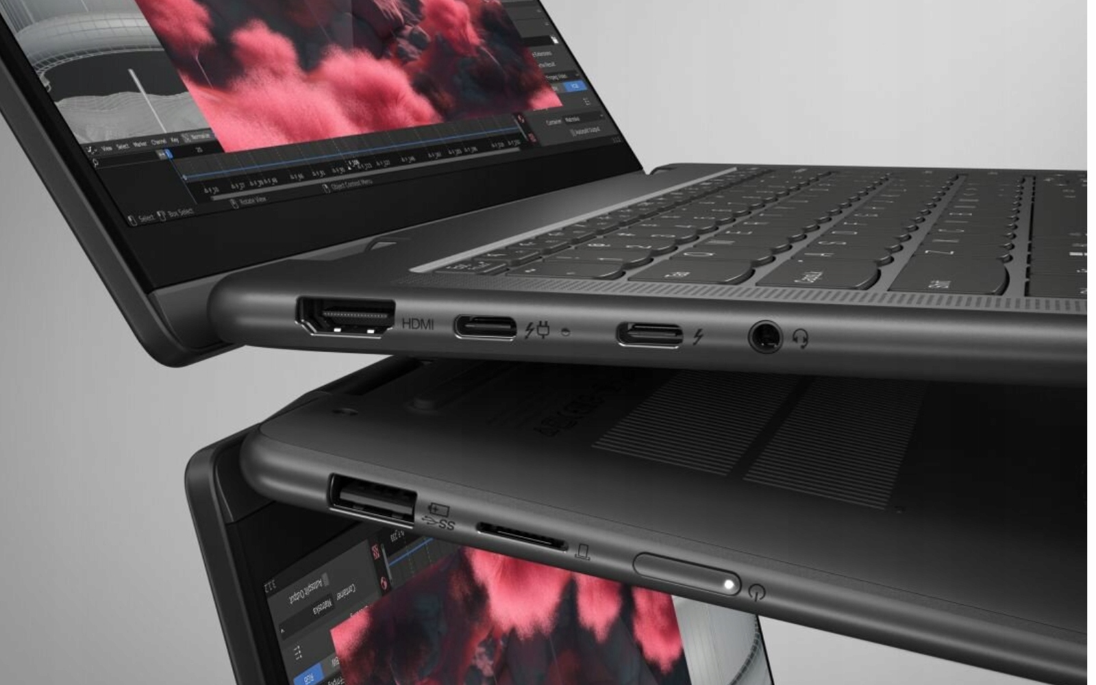 - Porty: USB4/Thunderbolt 4, USB-A 3.2 Gen 1, HDMI, Audio, Czytnik kart Micro SD