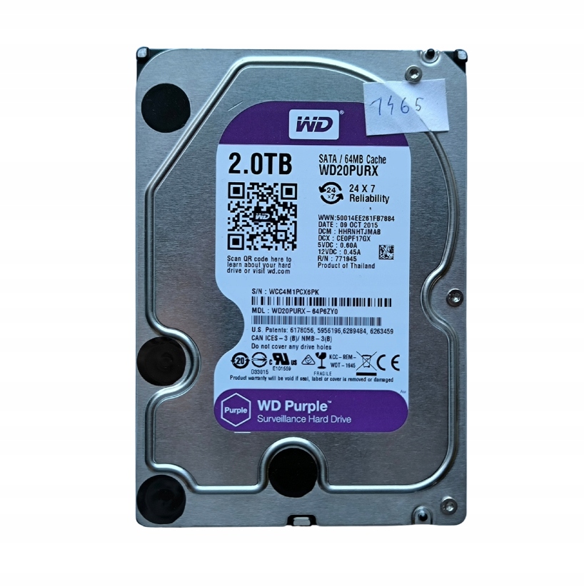 Dysk Twardy HDD WD 3,5" 2TB SATA III 5400 RPM Purple WD20PURX