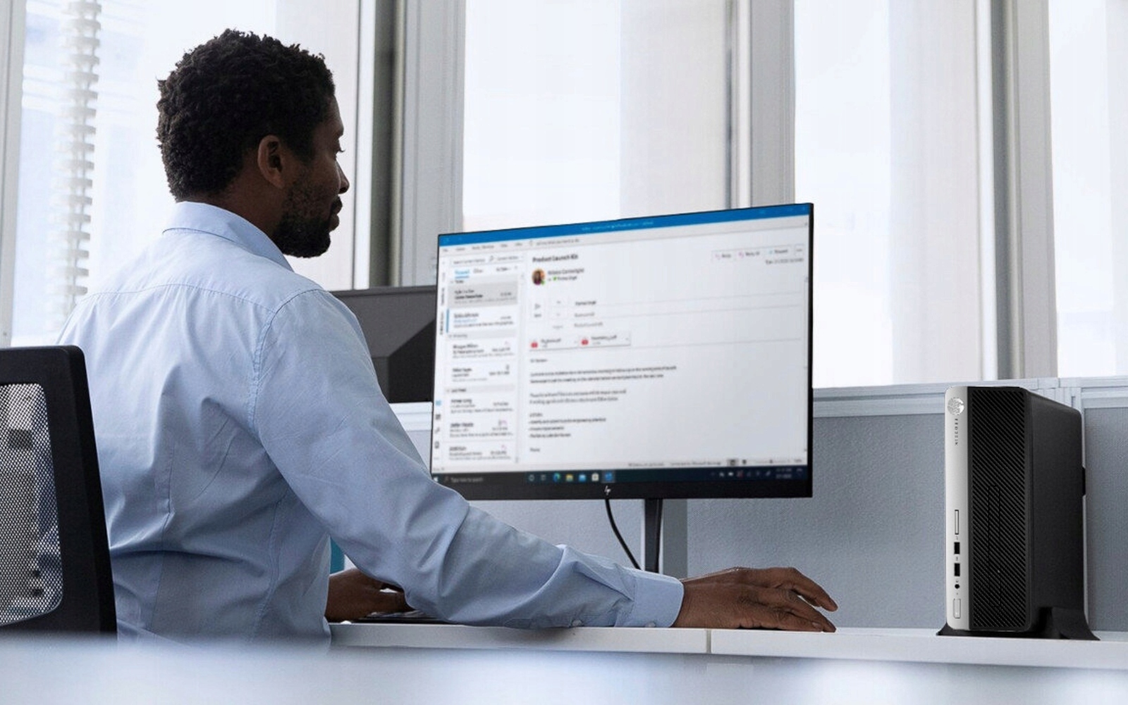 HP ProDesk 400 G6 SFF przyciąga wzrok nowoczesną, minimalistyczną stylistyką, która dzięki eleganckim liniom i matowemu wykończeniu doskonale prezentuje się w profesjonalnym otoczeniu. Kompaktowa obudowa typu Small Form Factor pozwala na sporą oszczędność miejsca, oferując jednocześnie możliwość pracy zarówno w pionie, jak i poziomie. Przemyślana konstrukcja zapewnia beznarzędziowy dostęp do wnętrza, co sprawia, że ewentualna rozbudowa lub konserwacja komponentów jest błyskawiczna i wyjątkowo prosta.