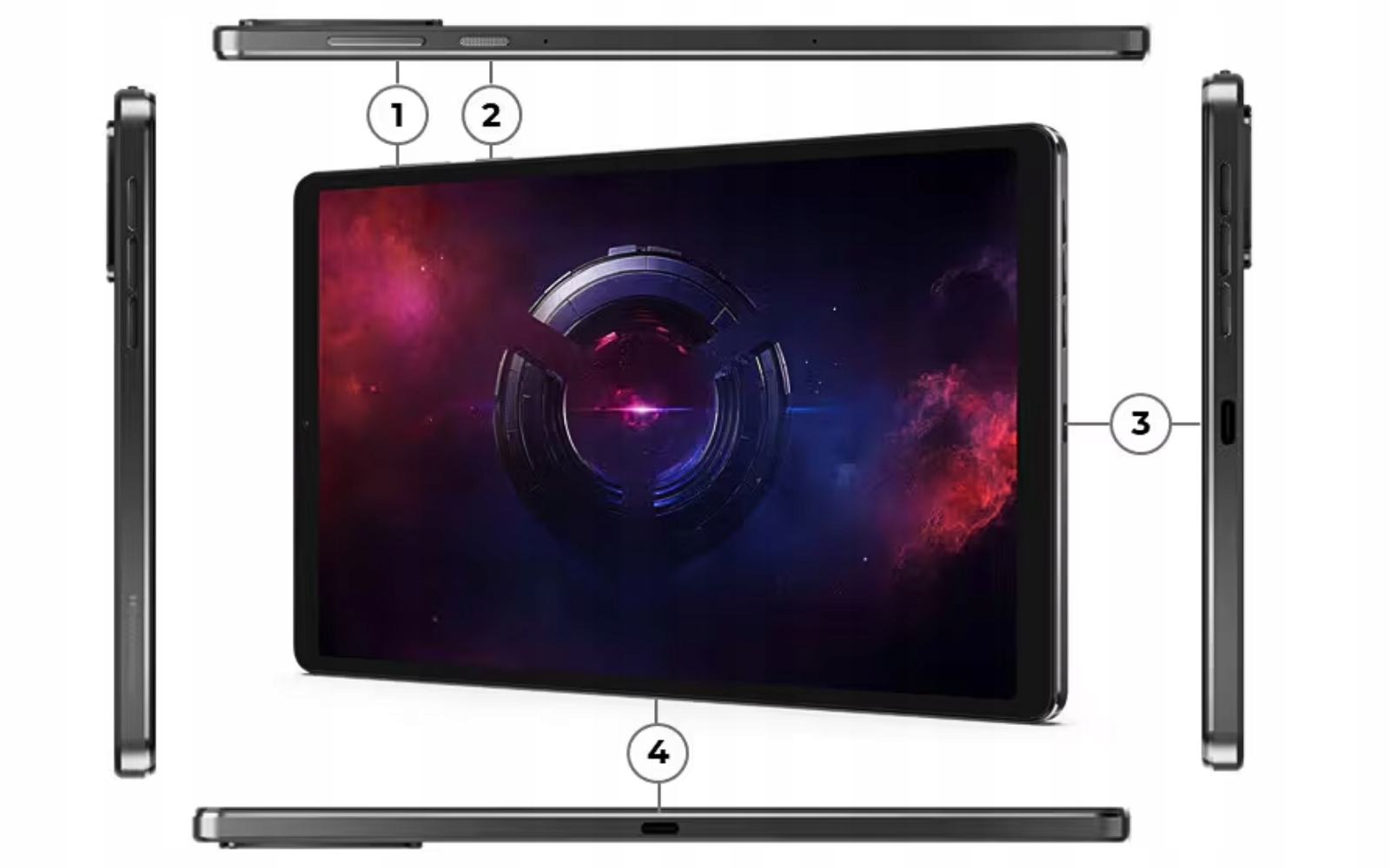 1. Przyciski ustawienia głośności | 2. Przycisk zasilania | 3. USB-C 3.1 Gen 2 | 4. USB-C 2.0