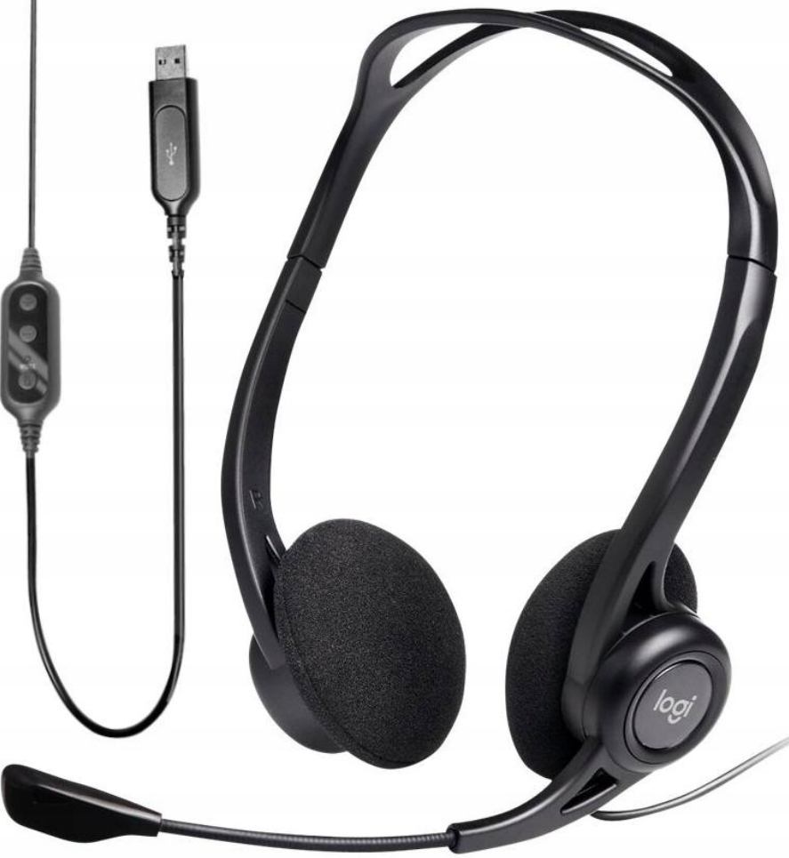 Przewodowe Słuchawki Nauszne LOGITECH PC960 USB Audio Stereo, Mikrofon z Redukcją Szumów Kabel 2,4 m. Czarne