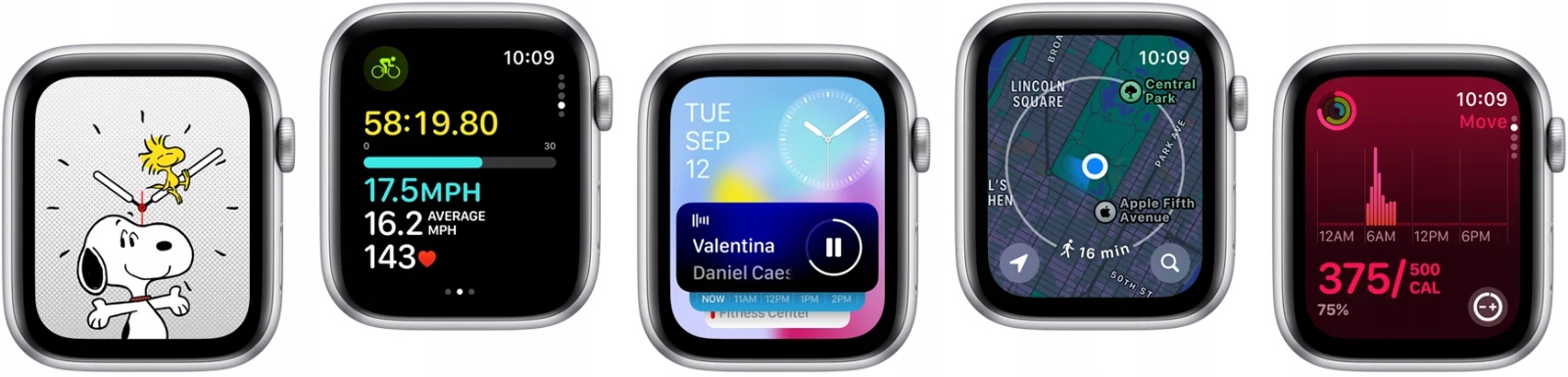 - Sterowanie: Ekran dotykowy, pokrętło Digital Crown, przycisk boczny