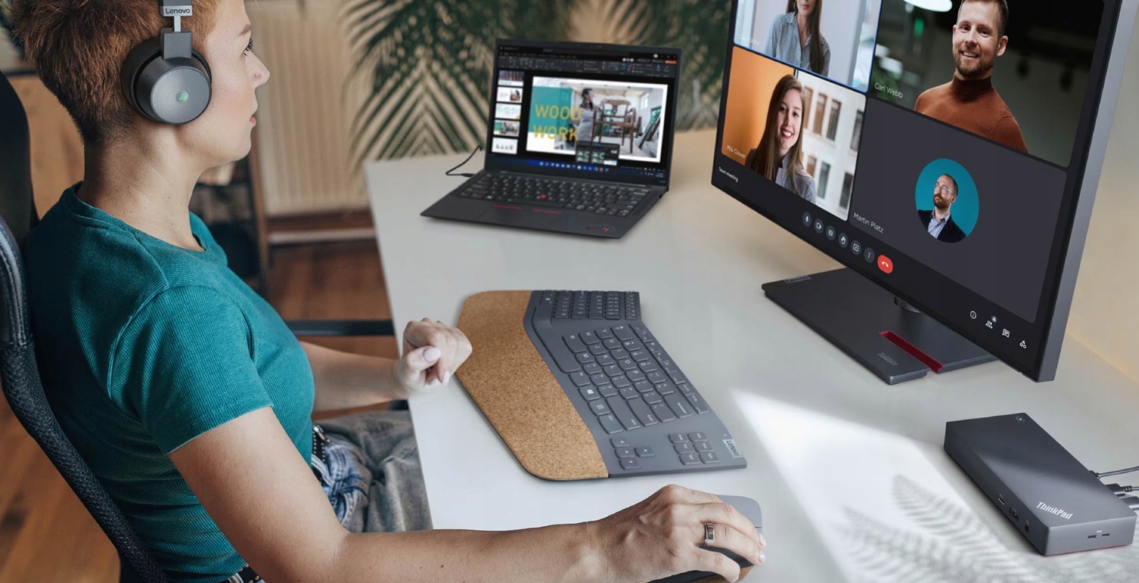 Pożegnaj chaos na biurku. Stacja dokująca Lenovo Universal Thunderbolt 4 zamieni Twój laptop w pełnoprawne stanowisko pracy – wystarczy jedno złącze USB-C. Obsługa do 4 monitorów, Gigabit Ethernet i szybkie ładowanie do 100 W. Podłącz. Pracuj. Wygraj.