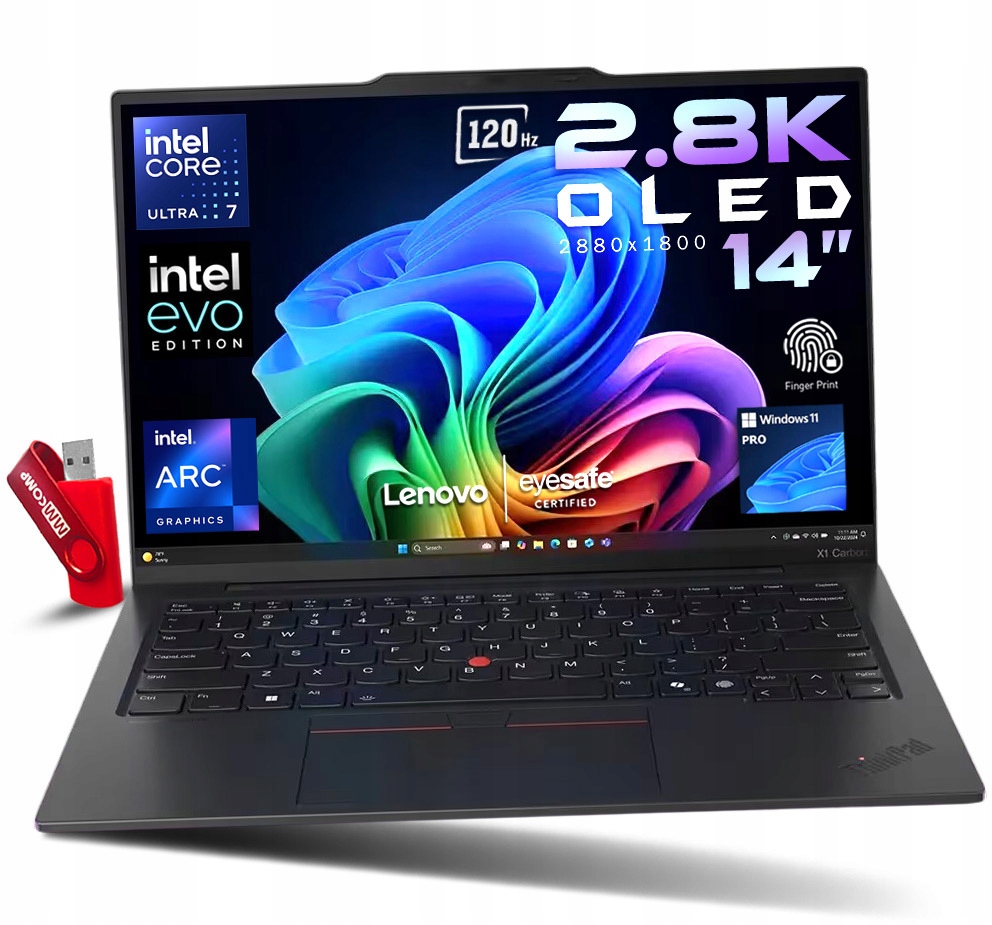 Laptop Lenovo Thinkpad X1 Carbon G13 Intel Core Ultra 7 268V DDR5 SSD 14" WQXGA+ 2880x1800 OLED, 100% DCIP3 Intel Arc Graphics 140V Windows 11 Pro + PENDRIVE